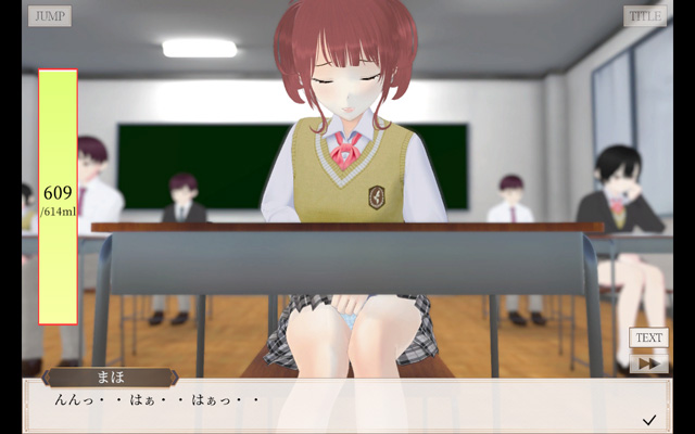 内容はゲームというか一本道のノベル。女の子がトイレへ行きそびれて失敗するというタイトルそのままのお話です。我慢部分は尿意ゲージの表示とともにテキストノベル形式で進行、おもらしはムービー形式となっています。